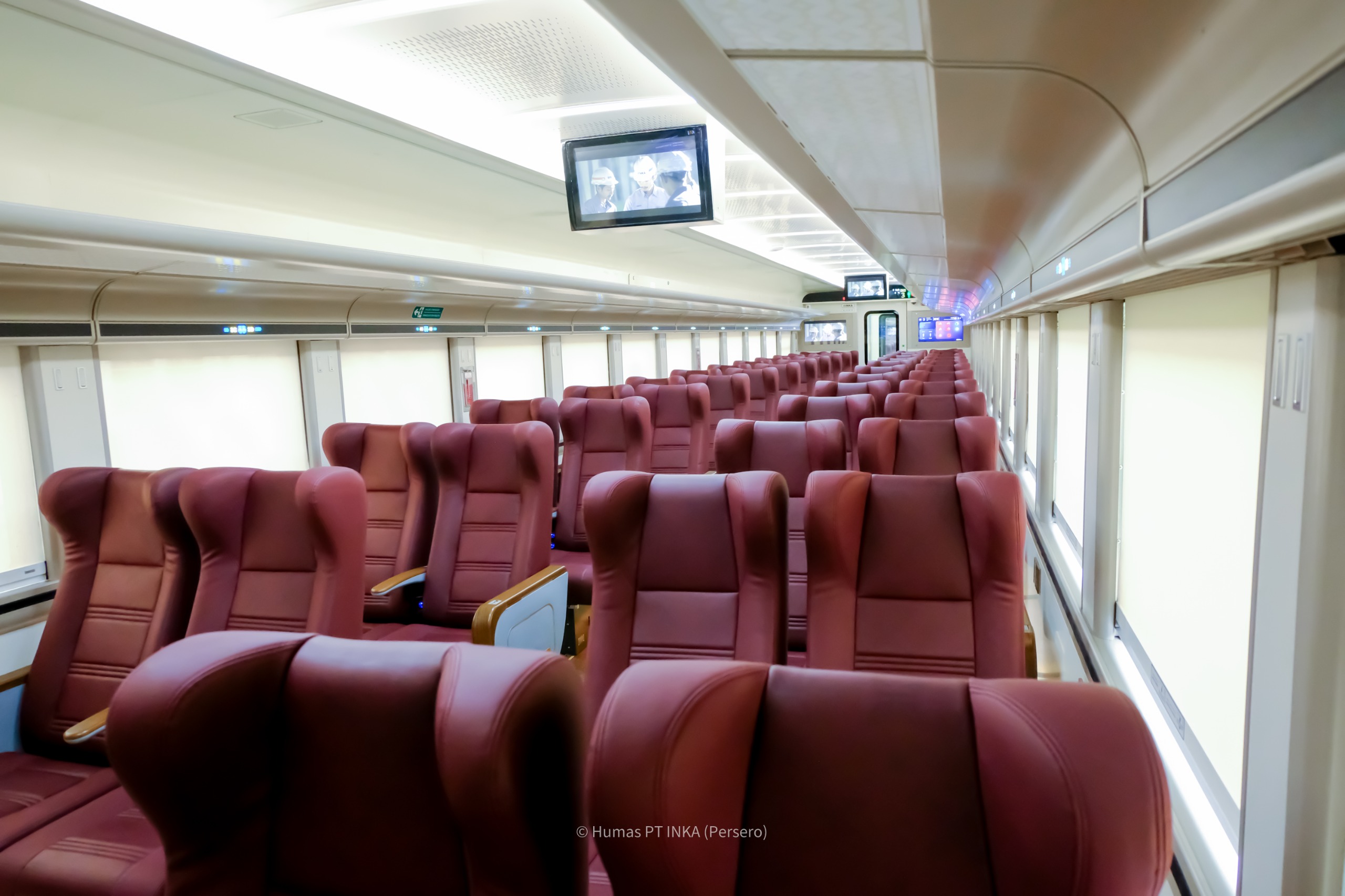 The superiority of the new generation train cars produced by PT INKA (Persero) is quite significant compared to the previous generations. For example, in the economy class used in the Majapahit train series, the capacity of the train car, which used to accommodate 106 seats with a formation of 3-2 and upright and facing seats, has now transformed into 72 ergonomic single seats with a 2-2 formation, which is much more spacious and comfortable for economy class passengers.