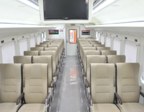 The Executive Class Train offers 120 km/h speed, 1,067 mm track gauge, 14-ton axle load, and advanced air brake system for luxury travel.